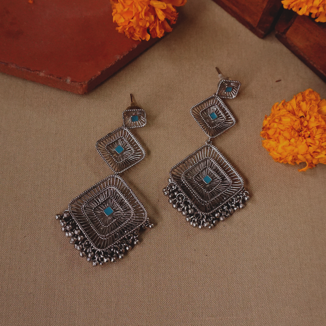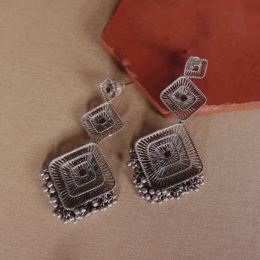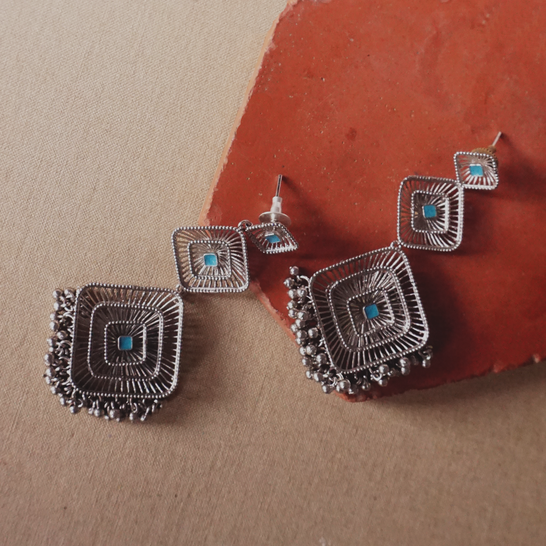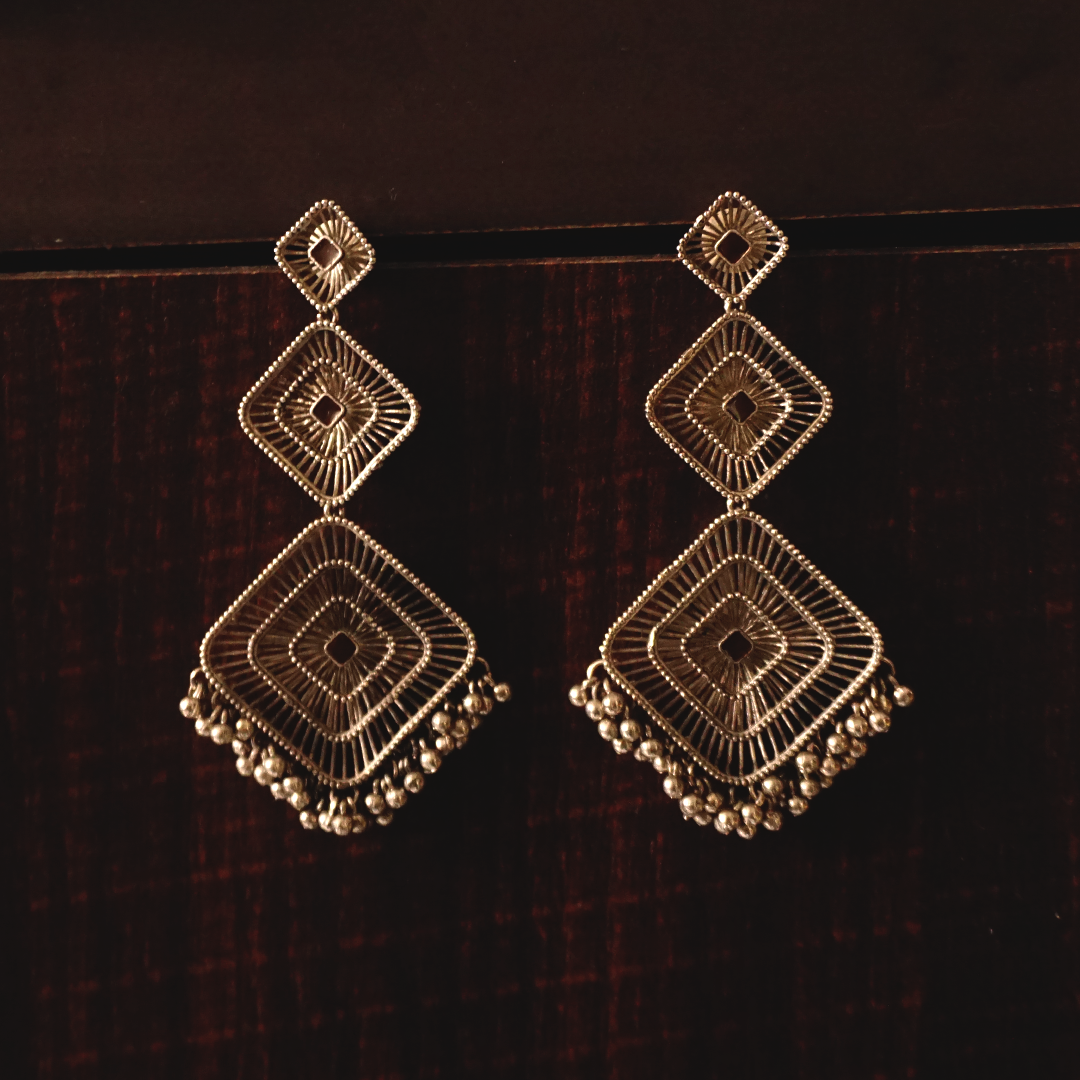 The earrings are handcrafted with precision designed thoughtfully for this festive season. Each piece is versatile and speaks for itself. The collection is silver plated made with brass metal with an oxidized finish.
